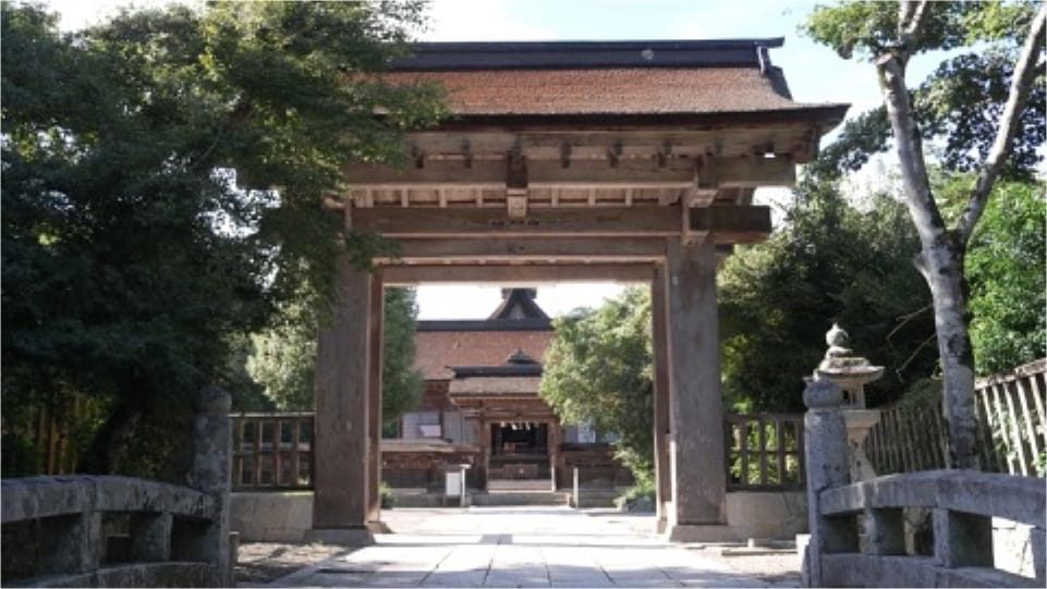 神社的神门是1874年从津山城迁至此地的,其坚固的木构框架、多层桧树皮葺成的缓坡顶部,为整个神社增添了庄重肃穆的氛围。